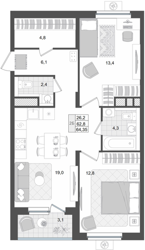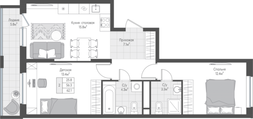 62,3 м²
