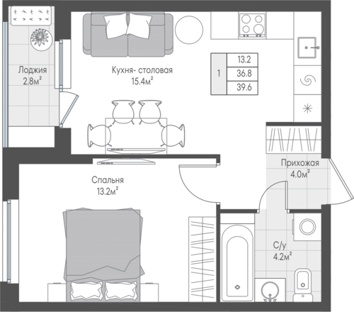 36,8 м²