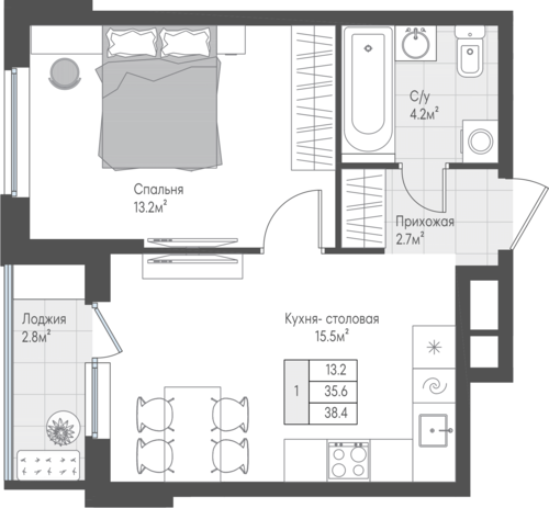 35,6 м²