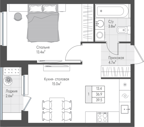 1-комнатная