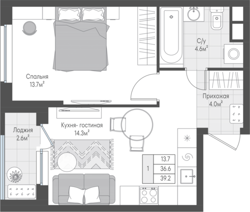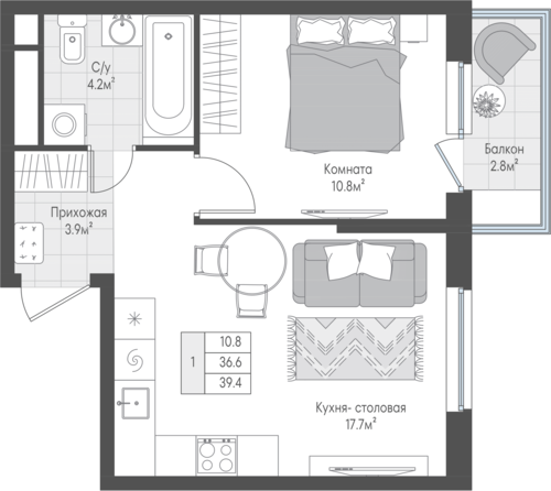 1-комнатная